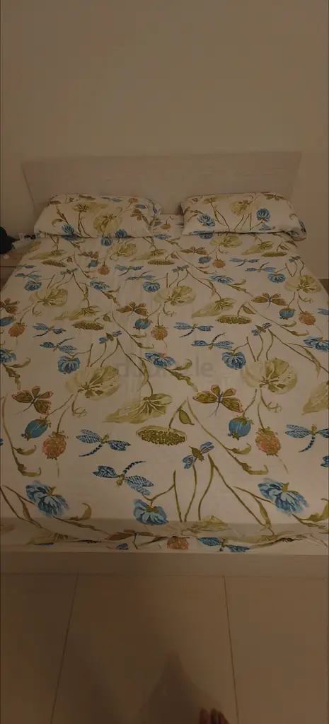 Queen size bed frame for sale from Pan Home in excellent condition. Reason for selling is that I am leaving the UAE.