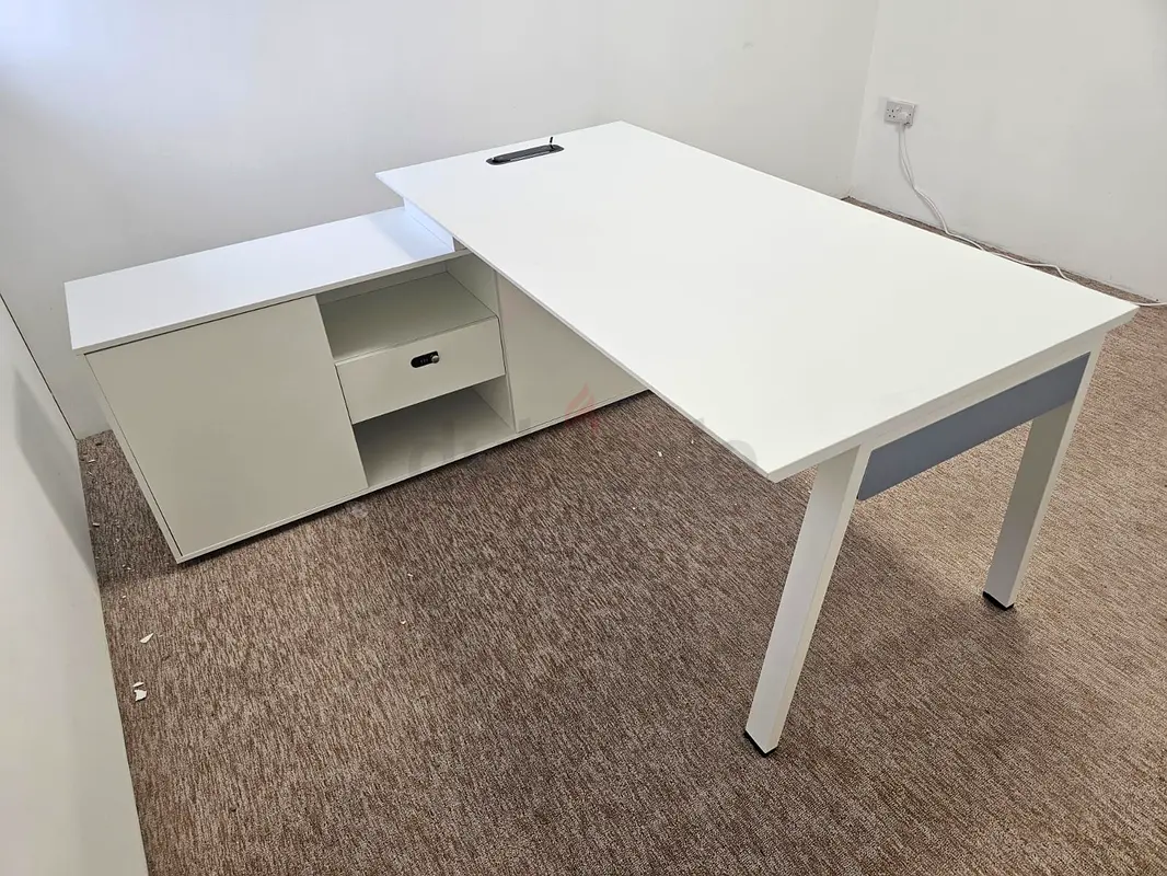 I'm selling this brand new, flawless modern study table in a clean white finish. It features a sleek design with a rectangular shape that's perfect for any home office or study space. The table includes storage solutions, making it practical for keeping your workspace tidy and organized. This table has never been used and is ready to enhance your productivity while adding a touch of elegance to your room.