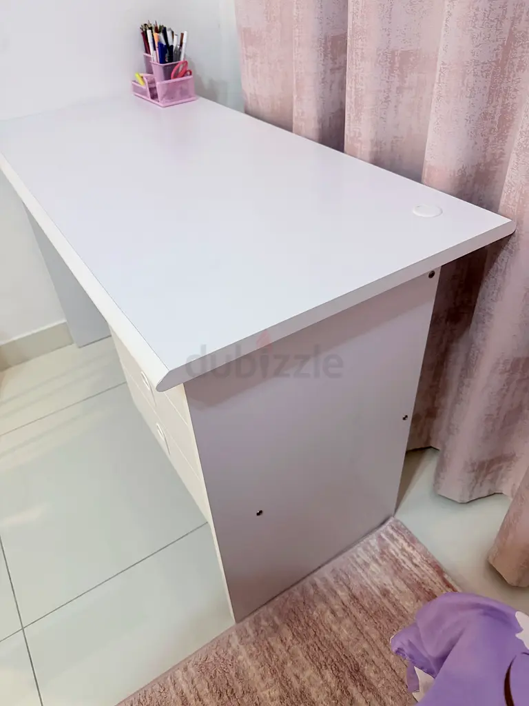 I'm selling this sleek and modern white study table that’s perfect for any home office or study nook. It features a contemporary rectangular design and is brand new, having never been used. Its flawless condition ensures it will add a touch of elegance to your space. The table is compact with a seating capacity for one, making it ideal for focused work or study sessions. Not only is it functional, but it also enhances the aesthetic of your room.