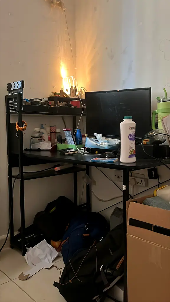 I'm selling my Compact Modern Study Table, perfect for small spaces and ideal for a home office setup. It's about 1-2 years old and has been used normally. The condition is average, but it still serves well for daily tasks.