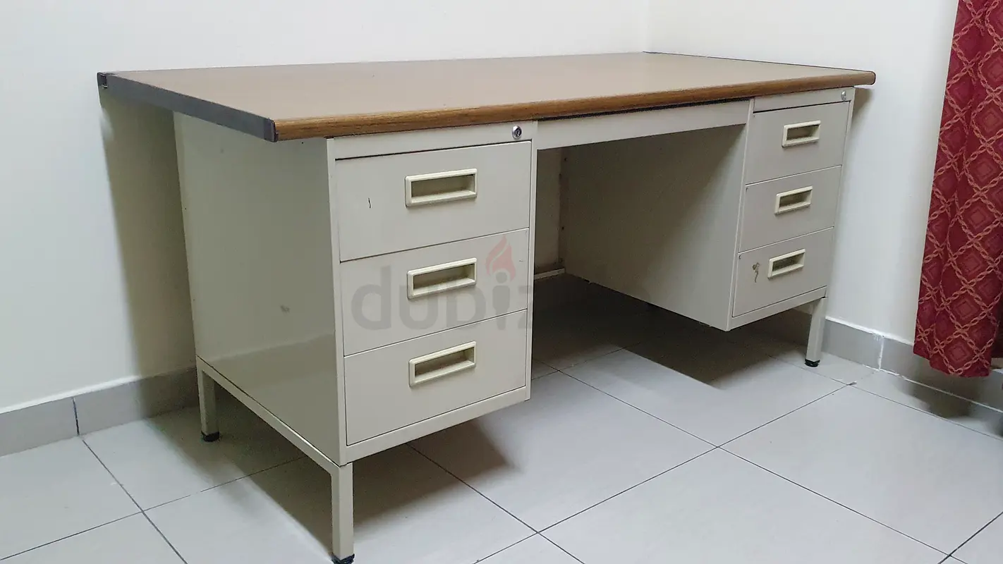 Well-built study/office desk in good condition, perfect for students or home office use. The desk features a clean, minimal design with a durable wooden top and sturdy metal frame. It offers plenty of storage with 6 smooth drawers, making it ideal for organizing books, documents, and accessories.