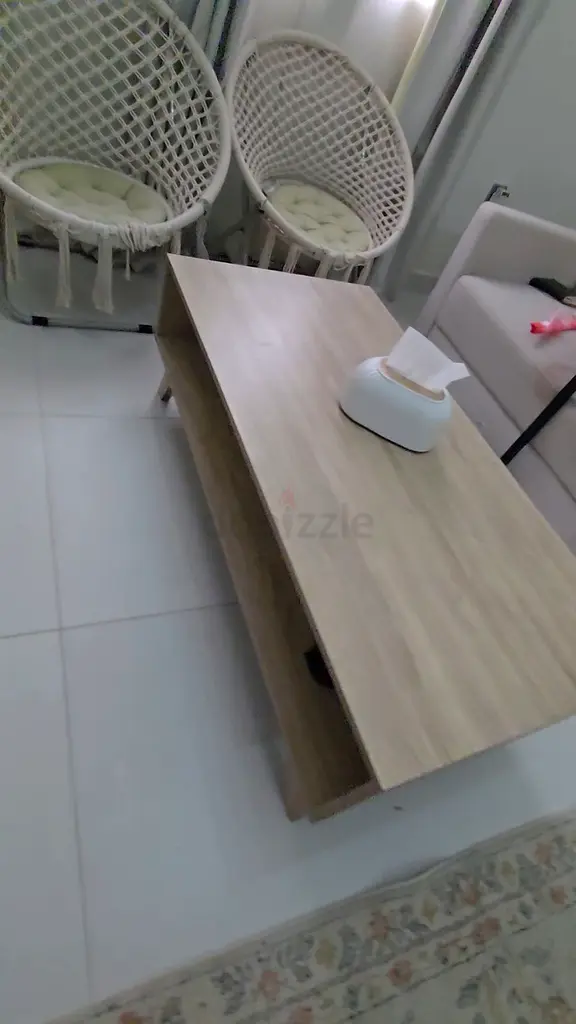 I’m selling a light brown Home Box rectangular coffee table I’ve used for about 1–2 years. It’s in excellent condition with only light usage and no major marks. The table has a simple, modern look with a lower shelf for storage — good for magazines, remotes or small baskets. I’m including two foldable chairs shown in the photos. Dimensions roughly fit a two-seater living area; the surface is sturdy and the finish is intact.