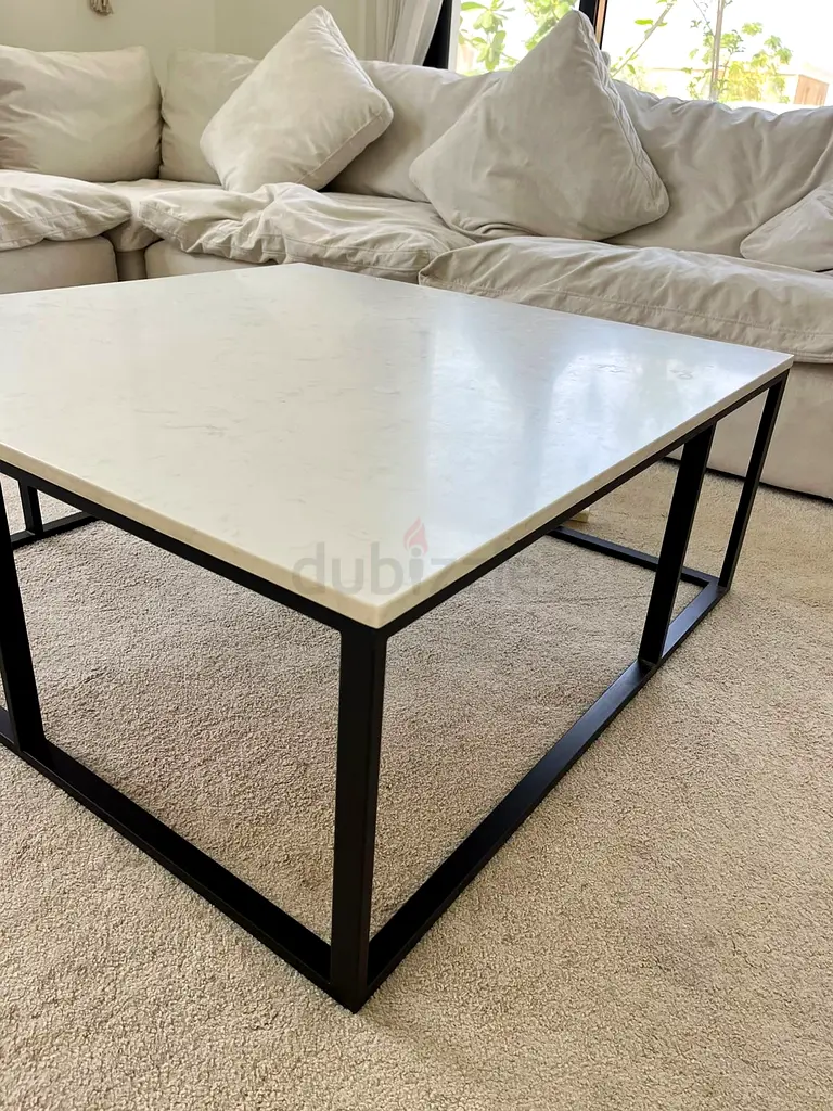 I'm selling a white marble-top coffee table with a black metal frame that I bought from Pan Emirates about 1–2 years ago. Original price is AED 1,100. The table is square and fits seating for about four. It's in excellent condition with only light usage — no chips or stains on the top and the metal frame is sturdy with minimal wear. Dimensions roughly suit a standard living room coffee, Dimensions is 1M by 1M. Ideal if you want a clean, modern centerpiece for your lounge.
