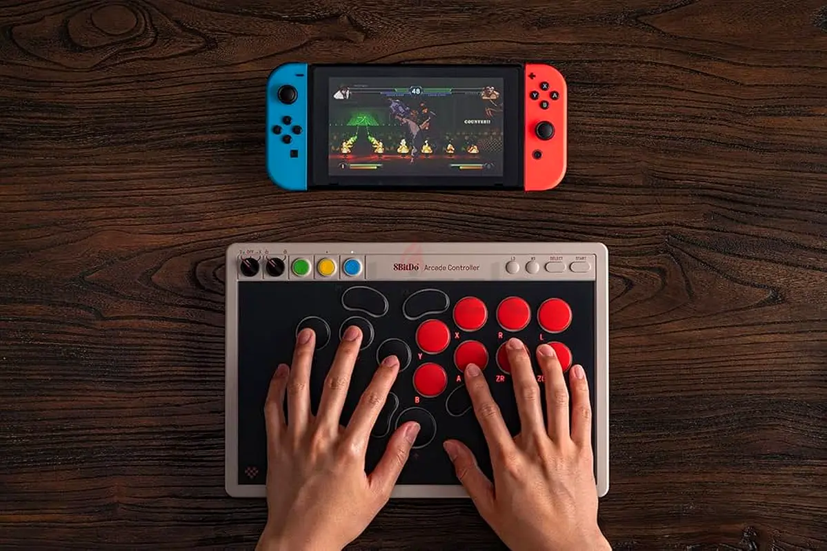8Bitdo All-Button Arcade Controller for Switch/Switch 2 & Windows – Bluetooth, 2.4G, Wired Connectivity, Low-profile Mechanical Switches, 4 Programmable Buttons with fast-mapping, Hot-swappable PCB