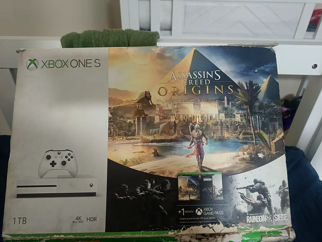 In perfect condition with original box , one controller white original. Three games included Gears of war 2 , Gears of War 3 , battlefield 1. Two games which are digital code Rainbow Six Siege and Assassin Creed Origins