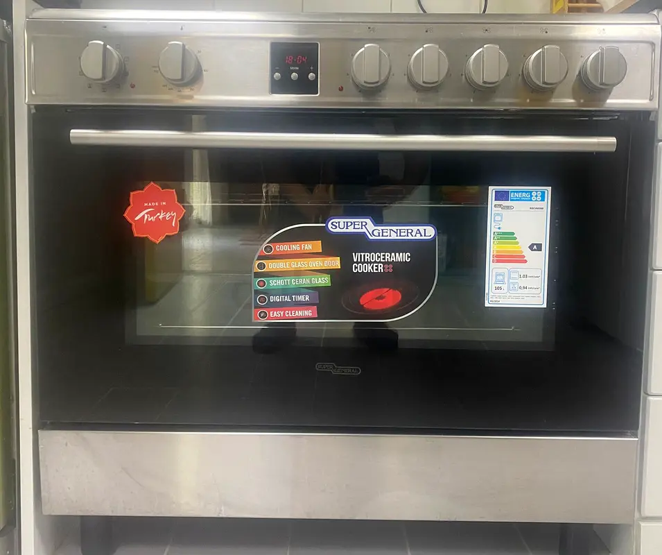 I'm selling my Super General Free-Standing Electric Cooker, which is in excellent condition and has been very gently used. This reliable appliance is perfect for any kitchen, offering a clean modern look paired with efficient cooking performance. It features multiple cooking functions and steady, precise heat control, making meal preparation simple and enjoyable. With its sleek, durable design, it delivers great results while adding a touch of style to your kitchen.