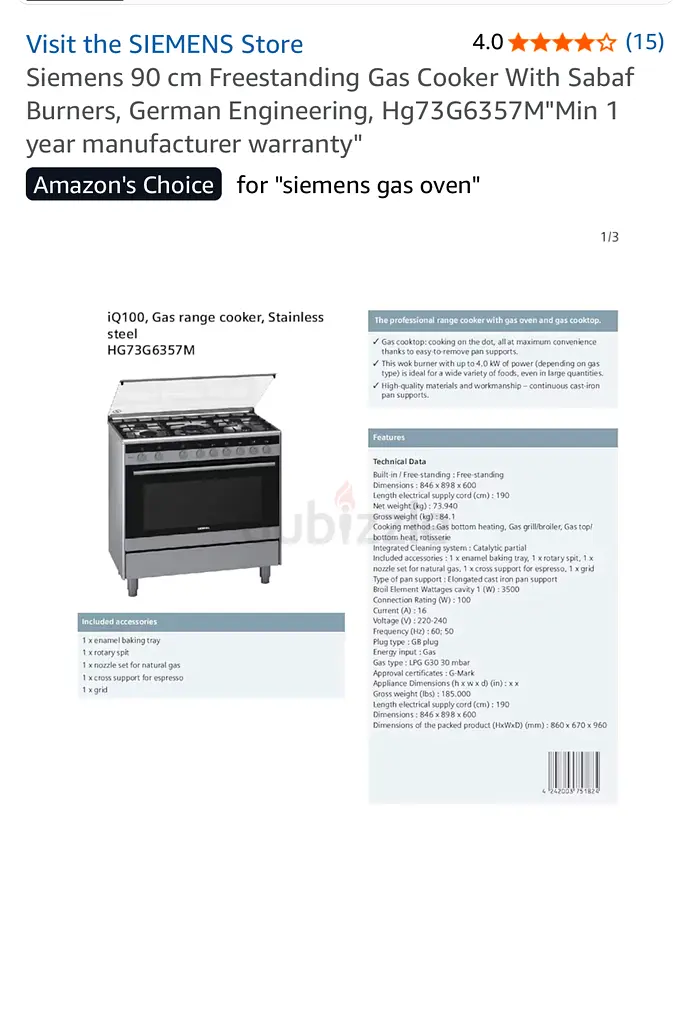 I’m selling my Siemens 90 cm Freestanding Gas Cooker, perfect for anyone who loves to cook. This reliable gas cooker is 2-5 years old and still in good condition, offering a quality cooking experience. With Sabaf burners and German engineering, it delivers efficient cooking performance to make your daily meals easier. The cooker has been used normally and is well-maintained. It doesn’t come with any warranty, but its sturdy design ensures it will last for many more delicious meals to come.