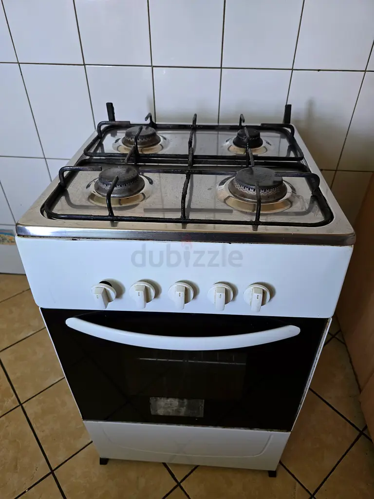 I have a Gas Cooker Oven for sale. It's in good condition and perfect for everyday cooking needs. This oven is versatile with its four burners, allowing you to prepare multiple dishes at once. It operates on gas and has been used normally, showing signs of wear but still works efficiently. Ideal for a home kitchen setup.