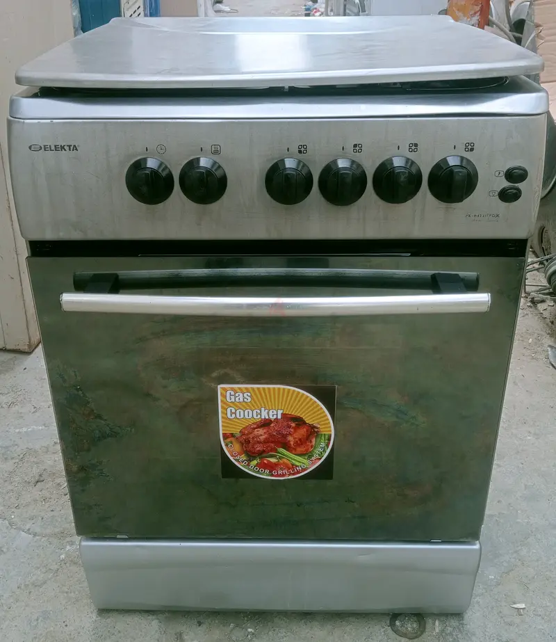ELEKATA GAS COOKING RANGE 60+60 OUTSIDE INSIDE GOOD CONDITION WITH ONE MONTH WARRANTY AVAILABLE HOME DELIVERY SERVICES INSTALLATION FACILITY CHECKING FACILITY LOADING UNLOADING LABOUR SERVICE ALL AVAILABLE TOP FOURE BURNER AND DWON SIDE OVEN WORKING GOOD FULL AUTO IGNITION SWITCH AVAILABLE IN THIS COOKING RANGE IF YOU LIKE THIS COOKING RANGE AND IF YOU WANT TO BUY THIS COOKING RANGE PLEASE YOU CAN CONTACT MY WHATSAPP OR PHONE NUMBER MORE DETAILS MY WHATSAPP OR PHONE NUMBER