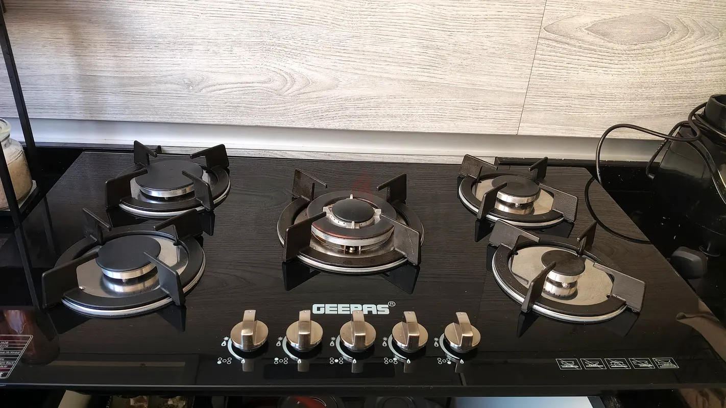 This Geepas 5-Burner Gas Stove is in excellent condition and has seen light usage. Its sleek black design adds a modern touch to your kitchen, making it not only functional but also visually appealing. This stove is perfect for those who love to cook and need ample space for multiple dishes. It features five burners, providing flexibility for various cooking needs. Please note that there is no warranty included with the stove.