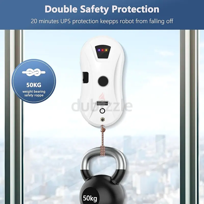 Strong suction, never falls off: Our window cleaning robot has advanced vacuum motor technology that delivers a strong suction power of 5600 Pa to ensure it sticks firmly to the surfaces. This window cleaning robot is equipped with a built-in UPS (uninterruptible power supply) that allows the window cleaning robot to continue working for up to 30 minutes during a power outage, so there is no risk of falling. Enjoy peace of mind and flawless windows with our reliable window robot.