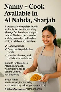 🌸 Nanny + Cook Available | Al Nahda, Sharjah / Dubai 🌸