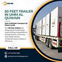 Need a spacious and reliable 50 feet trailer in Umm Al Quwain? Pickup Truck Rental Sajaa is here to provide the perfect solution for your transportation needs!