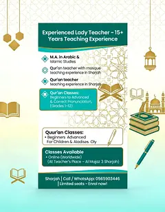🕌 Qur’an teacher with mosque teaching experience in Sharjah