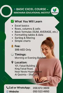 Improve your accuracy and speed in Excel with our Excel Data Validation Course at Makharia Institute, Sharjah. This course teaches you how to control the type of data entered into worksheets, prevent mist