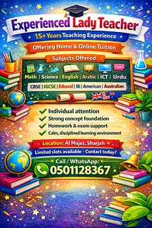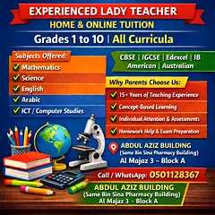 Experienced lady teacher with 15+ years teaching experience, including CBSE & IGCSE schools, offering home and online tuition.