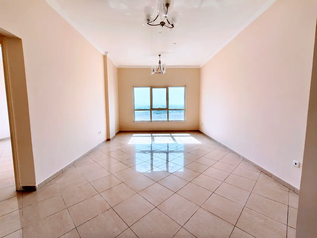 Spacious 2BHK with big hall and open view window close to road and school easy exit to dubai