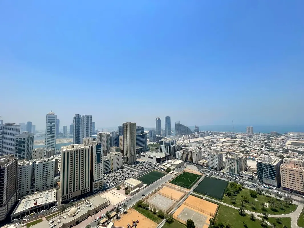 Balcony with open view | Free AC, parking, gym & pool | Spacious layout | Prime & lively location | Easy access to Dubai exit