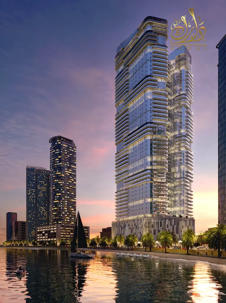 Where the skyline meets the sea. Joud Tower by Albatha Real Estate is a magnificent 55-storey architectural landmark rising above the serene waters of Al Mamzar and Al Khan Lake. Strategically located on the Sharjah-Dubai border, this tower is designed for those who seek the perfect harmony of tranquility and urban accessibility. This expansive 2-Bedroom residence is a showcase of modern elegance, featuring floor-to-ceiling glass walls, curved signature balconies, and smart-home integration that elevates your daily living to a resort-like experience.