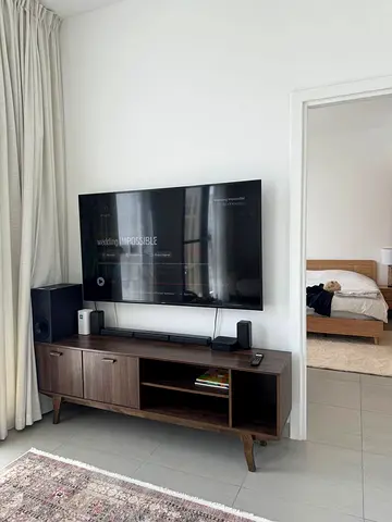 Selling Tv stand, extendable kids bed (with mattress) and fluffy rug