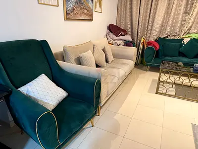 Teal Velvet 7-Seater Sofa set with Gold Legs - Good Condition